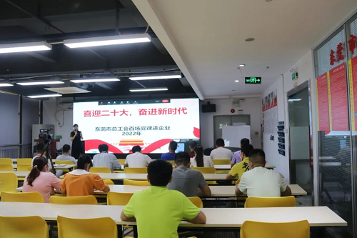 為進一步深入學(xué)習(xí)貫徹習(xí)近平新時代中國特色社會主義思想,近日,由廣東省東莞市市總工會主辦、大朗鎮(zhèn)總工會協(xié)辦的“中國夢·勞動美——喜迎二十大,建功新時代”主題黨課走進公司成員企業(yè)廣東以諾通訊有限公司。
