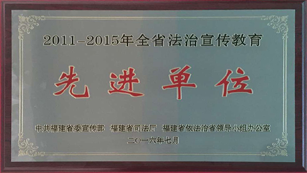 10月12日,在福建省國資委全系統(tǒng)“六五”普法總結表彰暨“七五”普法動員部署大會上,公司榮獲“2011-2015年全省法治宣傳教育先進單位”榮譽稱號,此項評選活動由福建省委宣傳部、省司法廳、省依法治省辦組織。