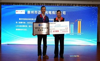 2018年4月18日,東江科技園“瞪羚匯”倍增計劃啟動暨首批培育企業授牌儀式在惠州市舉辦,園區管委會領導及各相關部門負責人、園區企業主要負責人等約100多人參加本次活動。福日電子成員企業惠州市邁銳光電有限公司等13家企業入選“瞪羚匯”倍增計劃培育企業。惠州邁銳常務副總經理陳曉斌上臺領取了培育企業牌匾和培育經費支票。