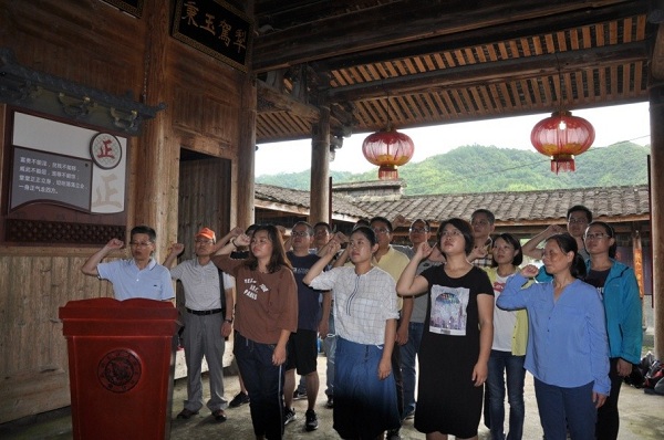 參觀完舊址后,在黨委書記李震的帶領(lǐng)下,新老黨員面對舊址大廳鮮紅的黨旗莊嚴(yán)宣誓。通過組織新黨員進(jìn)行入黨宣誓和老黨員重溫入黨誓詞行動,讓黨員“不忘初心、牢記使命”,不斷保持共產(chǎn)黨員的先進(jìn)性,以更加飽滿的熱情投身各自工作,切實發(fā)揮先鋒模范作用,永葆共產(chǎn)黨員的政治本色。