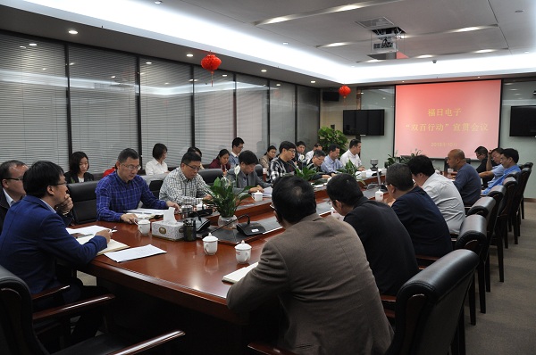 2018年10月29日,福建福日電子股份有限公司召開“雙百行動”宣貫會議,本部中層及以上管理人員、在榕成員企業(yè)、事業(yè)部主要負責(zé)人等參會。會上,本部資運部負責(zé)人介紹了公司“雙百行動”綜合改革實施方案。福建省電子信息集團副總經(jīng)理兼福日電子董事長卞志航出席會議并講話。