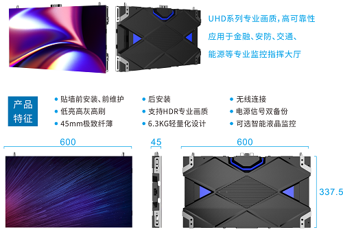 邁銳光電現場展示了弧形小間距大屏,該屏幕采用公司最新小間距產品UHD1.2拼接而成,整屏長9.6米,高2.7米,顯示像素達到7680x2160,相鄰箱體的夾角達到3度,最左側與最右側箱體的夾角達到48度,為現場觀眾呈現了一個高質量監控指揮中心弧形大屏體驗場景。該弧形屏所用的UHD小間距系列產品目前已廣泛應用于安防、交通、能源、金融行業的指揮中心。