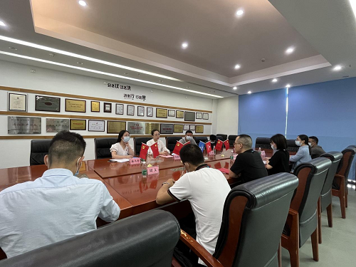 揭牌儀式后,松崗街道辦工作人員與源磊科技進行座談,交流溝通黨支部下階段工作規劃。張露思詳細了解了新冠肺炎疫情對源磊科技經營發展的影響及現階段存在的困難,對該公司黨建工作提出了建議,并希望下階段吸納更多優秀人才加入黨員隊伍,壯大黨組織基礎。