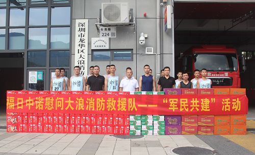 國慶來臨之際,為進一步弘揚擁軍優屬的光榮傳統,近日,福日電子成員企業福日中諾電子科技有限公司到深圳市大浪街道消防救援隊開展國慶慰問活動,為消防指戰員送上慰問品的同時,致以節日問候,共敘軍民魚水之情。