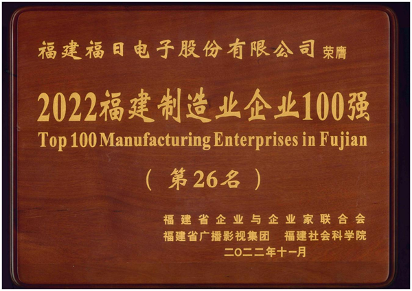 福日電子再度入圍2022福建制造業企業100強榜單 位列第26名